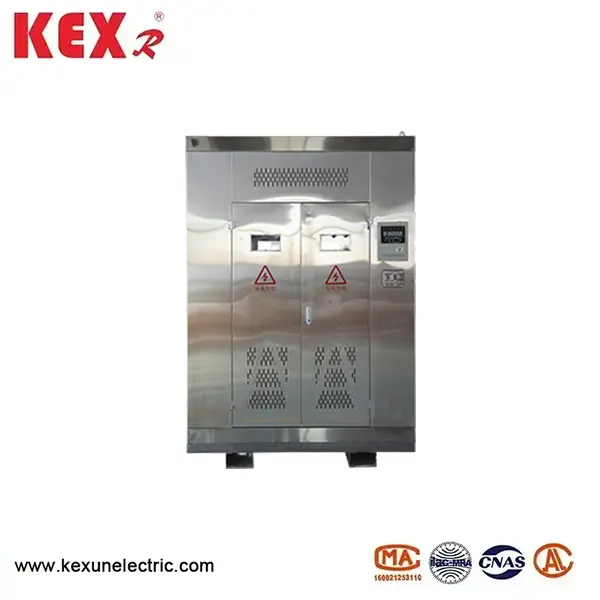 கே.எஸ்.ஜி உலர்-வகை சுரங்க மின்மாற்றிக்கான வெப்பநிலை கட்டுப்பாட்டு அமைப்பு வெப்பநிலை கட்டுப்படுத்தி மற்றும் குறைந்த மின்னழுத்த முறுக்கு மேற்புறத்தில் நிறுவப்பட்ட வெப்பநிலை அளவிடும் உறுப்பு ஆகியவற்றைக் கொண்டுள்ளது, இது உற்பத்தியின் வெப்பமான புள்ளியாகும். 1T மின்மாற்றியின் வெப்பநிலை கட்டுப்பாட்டை உணர்ந்து, மின்மாற்றியின் செயல்பாட்டின் போது முறுக்குகளின் சூடான இட வெப்பநிலையைக் காட்டுகிறது. அதிக சுமை செயல்பாடு அல்லது தவறு காரணமாக மின்மாற்றி முறுக்கு வெப்பநிலை அதிகமாக இருந்தால், வெப்பநிலை கட்டுப்படுத்தி அலாரம் மற்றும் பயணத்தை வழங்கும், மேலும் வெப்பநிலை கட்டுப்பாட்டு அமைப்பு அலாரம் மற்றும் பயணத்திற்கு செயலற்ற தொடர்புகளைக் கொண்டிருக்கும். கட்டாய காற்று குளிரூட்டலைப் பயன்படுத்தும் போது, வெப்பநிலை கட்டுப்படுத்தி முறுக்கு வெப்பநிலையின் அடிப்படையில் குளிரூட்டும் சூழல் அமைப்பு சான்றிதழ் விசிறியின் உள்ளீடு அல்லது மாறுதலை தீர்மானிக்கிறது. RS485 தகவல்தொடர்பு இடைமுகம் தொலை நிர்வாகத்திற்கு விருப்பமாக நிறுவப்படலாம். தயாரிப்பு உறை P21 அல்லது அதற்கு மேற்பட்ட பாதுகாப்பு அளவைக் கொண்டுள்ளது