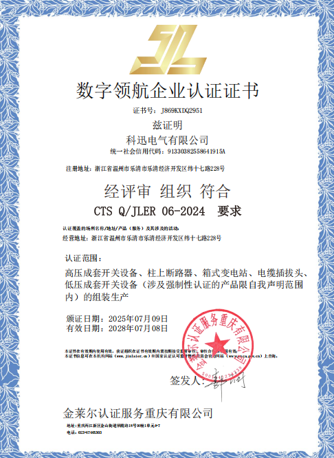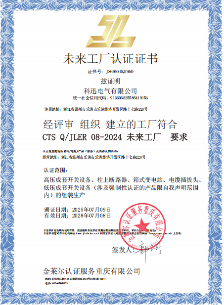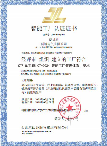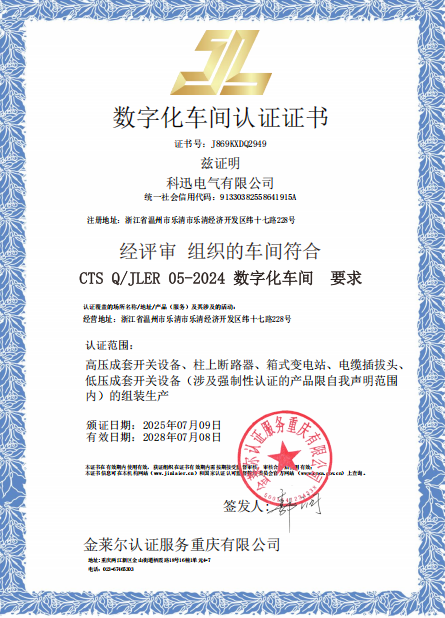 குன்லர் சான்றிதழ் சேவை சோங்கிங் கோ, லிமிடெட் என்பது சான்றிதழ் வணிகத்தில் நிபுணத்துவம் பெற்ற ஒரு சுயாதீனமான மூன்றாம் தரப்பு சான்றிதழ் நிறுவனம் ஆகும். இது தேசிய சான்றிதழ் மற்றும் அங்கீகார நிர்வாகத்தால் (சி.என்.சி.ஏ) சான்றிதழ் பெற்றுள்ளது, மேலும் பல மின் நிறுவனங்களுக்கு தொழிற்சாலை சான்றிதழ் பெற்றது. இது சீனாவில் நன்கு அறியப்பட்ட மற்றும் அதிகாரப்பூர்வ மூன்றாம் தரப்பு சான்றிதழ் நிறுவனம். கெக்ஸுன் 2025 ஆம் ஆண்டின் முதல் பாதியில் குன்லர் நிறுவனத்தைத் தொடர்பு கொண்டார். பிஸியான வணிகத்தின் காரணமாக, ஜூலை 1 சிறப்பு நாளில் கியூன்லர் நிறுவனம் மதிப்பாய்வுக்காக வர திட்டமிடப்பட்டுள்ளது. ஒரு வார தொழிற்சாலை தணிக்கைக்குப் பிறகு, குன்லர் தணிக்கையாளர்கள் கெக்ஸூன் ஐந்து சான்றிதழ்களை வழங்கினர், இதில் டிஜிட்டல் பட்டறை, எதிர்கால தொழிற்சாலை, நுண்ணறிவு தொழிற்சாலை மற்றும் நுண்ணறிவு உற்பத்தி ஆர்ப்பாட்ட தொழிற்சாலை ஆகியவை அடங்கும். சான்றிதழ் நோக்கத்தில் உயர் மின்னழுத்த சுவிட்ச் கியர், போஸ்ட் சர்க்யூட் பிரேக்கர்கள், பெட்டி வகை துணை மின்நிலையங்கள், கேபிள் செருகிகள் மற்றும் குறைந்த மின்னழுத்த சுவிட்ச் கியர் ஆகியவை அடங்கும்.