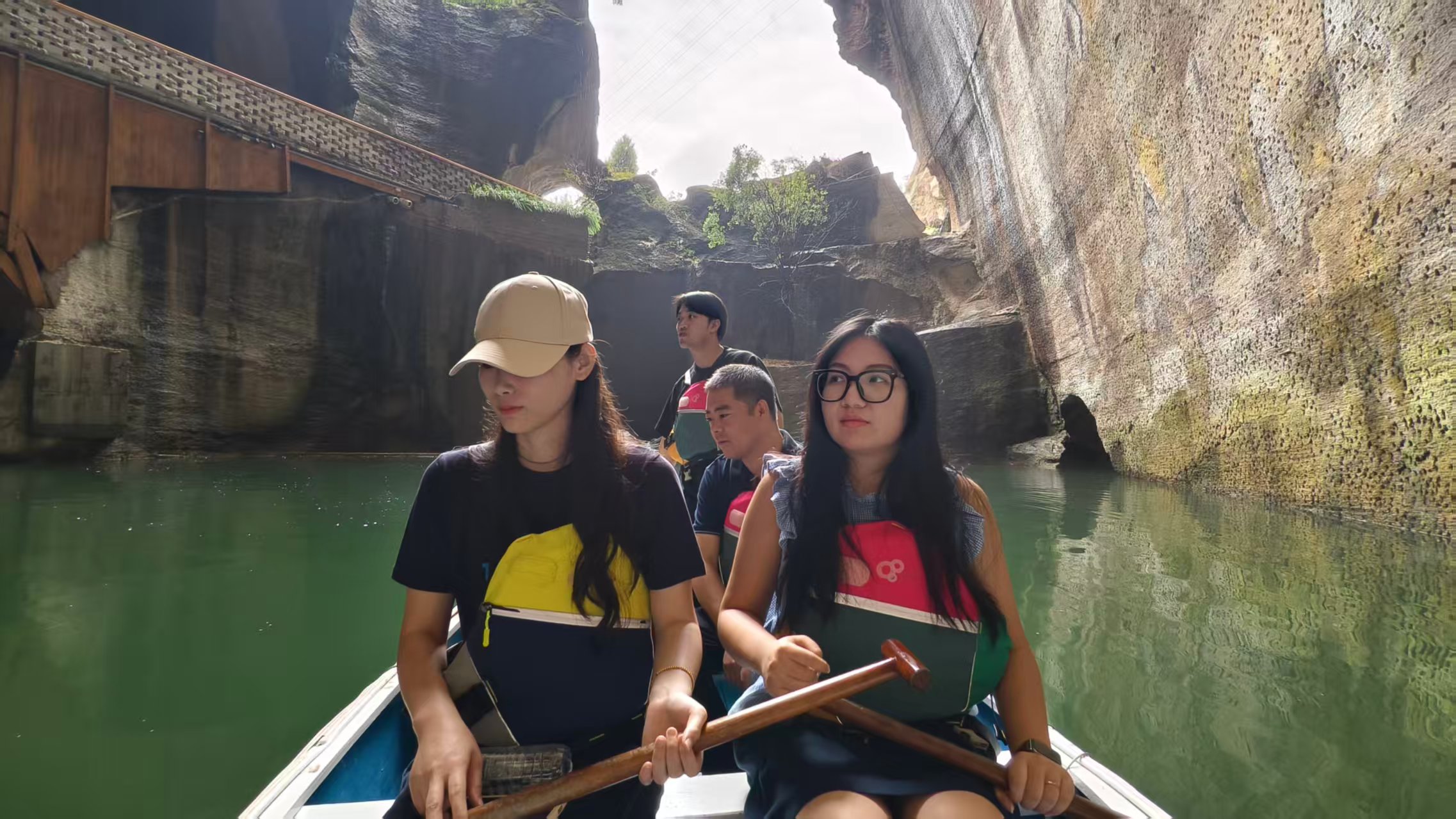 தனித்துவமான "வெற்று மலைகளில் படகு சவாரி": இயற்கை எழில் கொஞ்சும் பகுதியில் உள்ள நீர் செங்குத்தாகவும் கிடைமட்டமாகவும் இருக்கும், மேலும் நீங்கள் குகைகளுக்கு இடையே படகில் செல்லலாம். பச்சை நீரின் மேற்பரப்பு கரடுமுரடான பாறைச் சுவருடன் முற்றிலும் மாறுபட்டது, ஒரு தனிமைப்படுத்தப்பட்ட இரகசிய மண்டலத்திற்குள் நுழைவது போலவும், படங்களை எடுப்பது படத்திற்கு வெளியே உள்ளது.